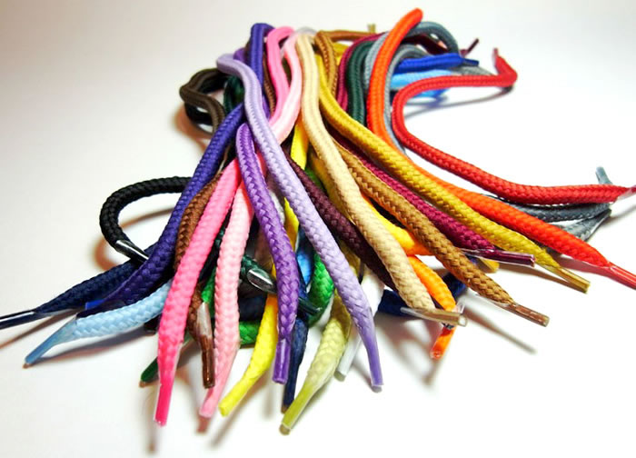 實心扁帶、空心扁帶、圓帶、橢圓帶、三角帶、四方帶、葫蘆帶、珍珠帶、花邊帶、凹凸帶等等。 動鞋帶、戶外鞋帶、板鞋鞋帶、皮鞋鞋帶、安全防滑脫的紐扣鞋帶、迷你型的蝴蝶帶等等。