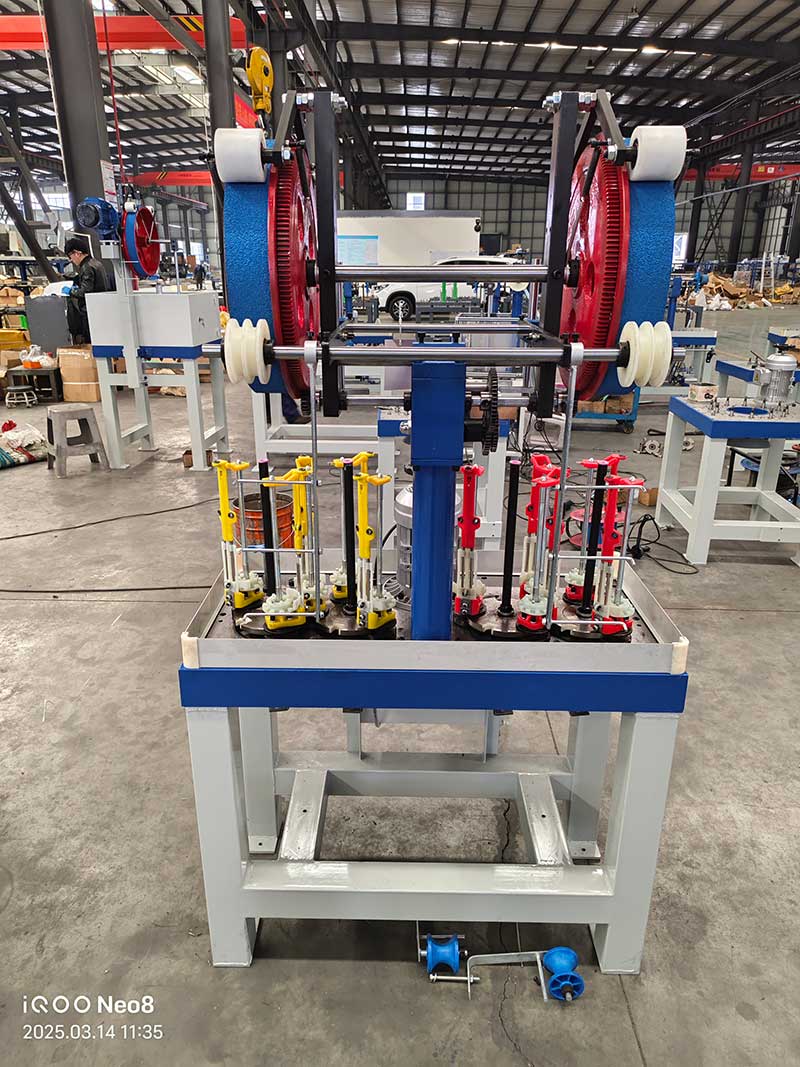 編織產品為 地毯繩(15mm 寬、 7mm 厚扁帶) 電子復繞機(三根光桿款,手扳尾座) 彈簧額外帶0.4/0.5彈簧各一套 撥盤中間要穿無紡布,中心芯管要做結實一些。芯管對應撥盤下面每個撥盤一個過線輪,過無紡布使用。含芯線傘架 220V 益電通 130錠子 12個 紗管70*210 20個 纏繞膜密封 ,掛線出廠